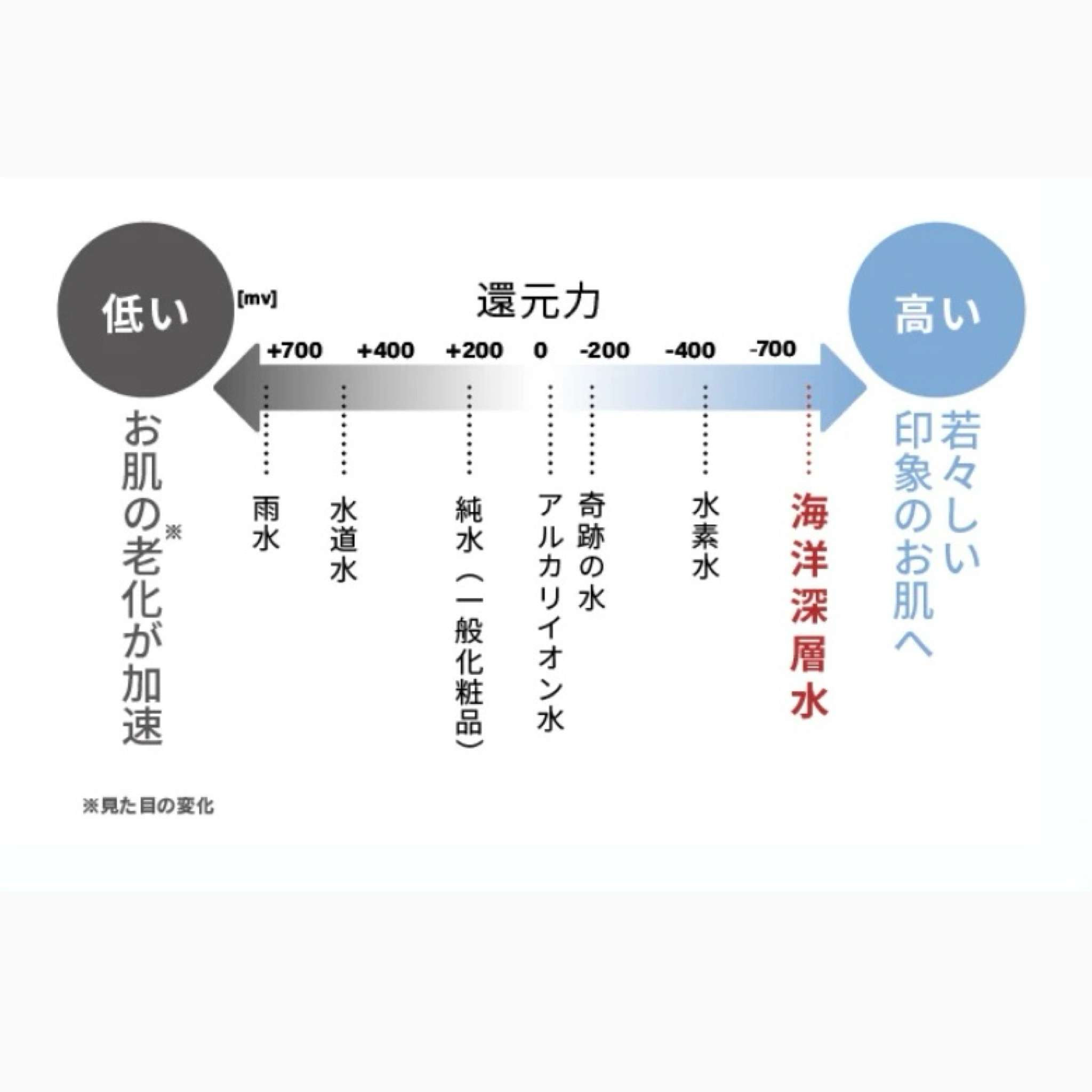 超純水が毛穴の奥まで浸透して汚れを浮かせ、海洋深層水のミネラルが肌を引き締めることで、すっきりとした清潔な状態へ導きます。