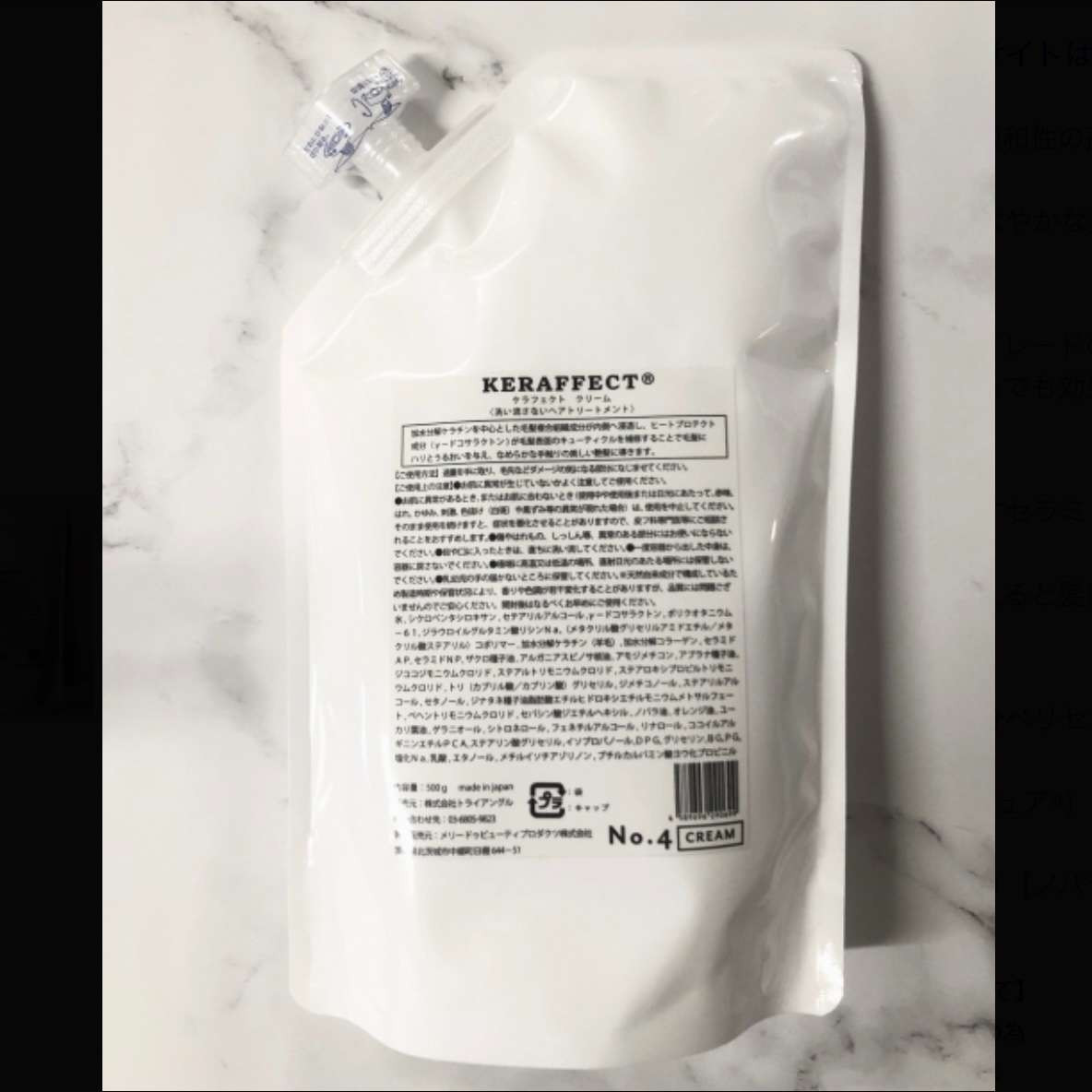 ●【店舗配送】業務用ケラフェクトクリーム500gパウチ
